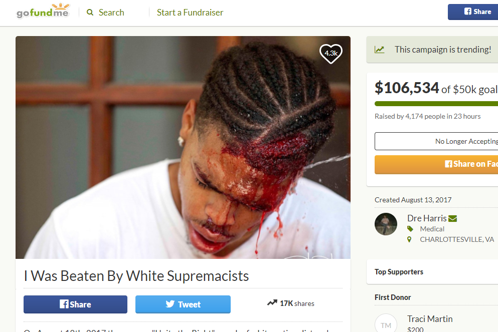 Remember DeAndre Harris? He’s the nigger at the Unite the Right rally in Charlottesville who attacked a White man named Harold Crews with a flashlight. After the attack, he got the shit beat out of him by a group of nationalists. Even though this nigger deserved to get lynched for what he did, the Jew-run media made him out to be a poor innocent victim of White supremacists. This enabled him to raise well over $100,000 via a GoFundMe page that he used to buy a fancy car and record rap songs.